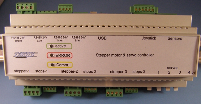 The motors are controlled by the netbook PC, through a USB port. The controller can be DIN rail mounted and contains a powerful