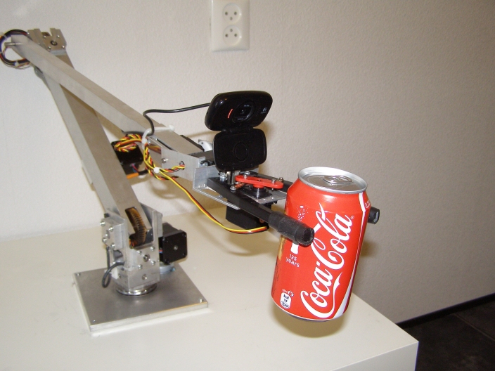 Another application of the arm, this time mounted on a small table: picking up a full 330ml can of coke and